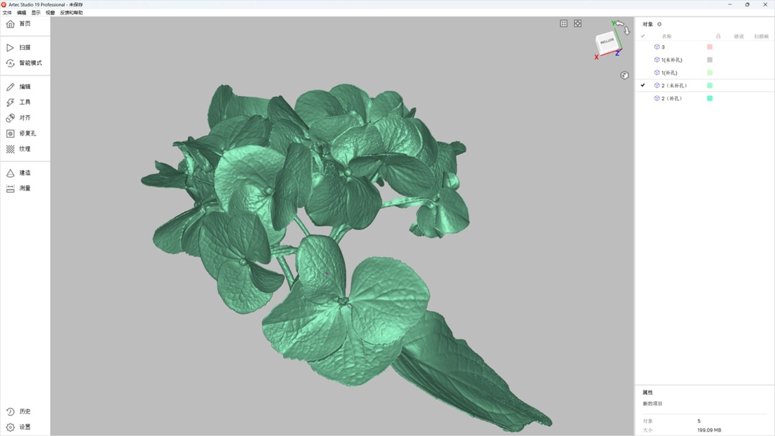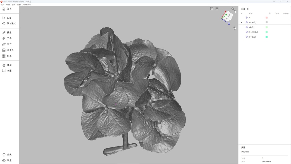 アジサイの花びらは非常に薄く層状に重なっているため、スキャン時には形状が崩れてしまう恐れがあります。これに対応するためチームは花束を慎重にトリミングし、スキャン中にさまざまな配置を試みました。またArtec Studioソフトウェアのリアルタイムプレビュー機能を活用することで、スキャンの品質をその場で即座に確認でき、欠損部分があればすぐに再スキャンが可能となり後工程での大幅なモデリング修正を避けることができました。完成した3DモデルはArtec StudioからOBJやSTL、FBXなどの形式でエクスポートでき、ZBrushやBlenderといったデザインソフトウェアとのシームレスな連携が可能です。