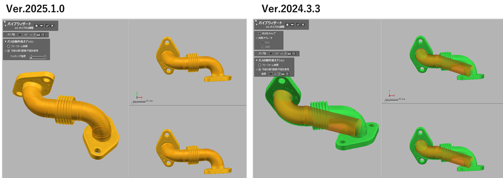 パイプウィザードでポリ頂点を作成する場合に、正確な形状を作成しにくい状況がありした。最新版ではポリ頂点からパイプ形状を作成する際に、より正確な形状が作成できるようになります。