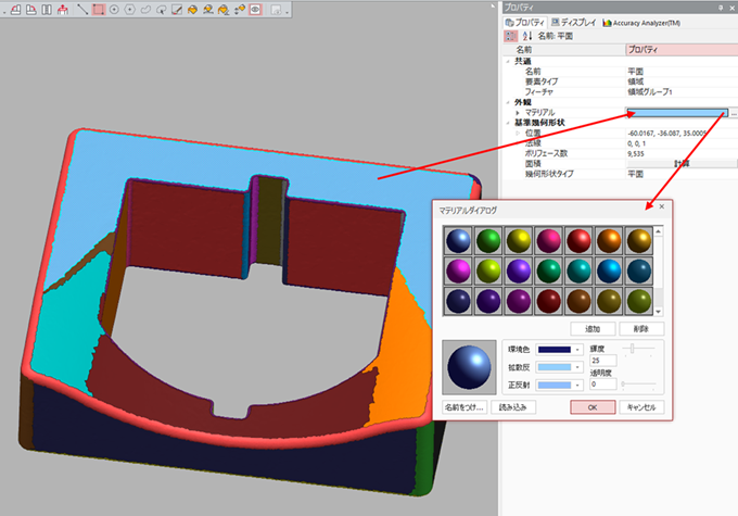 メッシュの色と同じ色がデフォルトで適用さることがなくなり、領域ごとに色を割り当て変更できるようになりました。