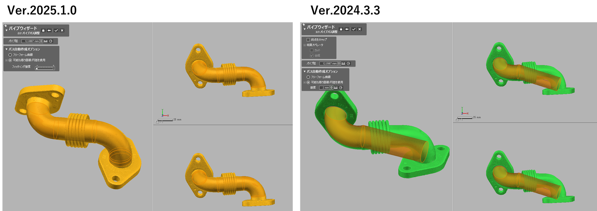 [パイプウィザード] は、不完全なスキャンデータから、より正確なパイプモデリングを作成出来るように大幅に改善されました。