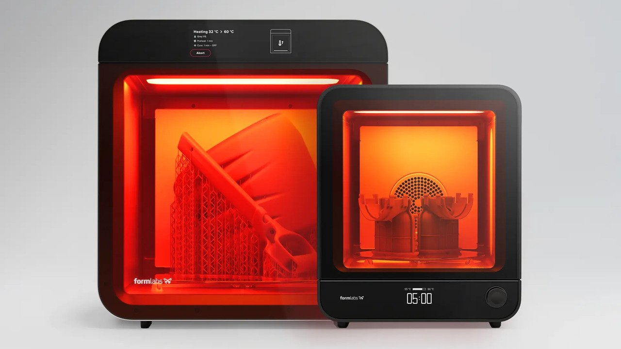 Form Wash L V2、Form Cure L V2は、ユーザーの後処理ワークフローを合理化するように設計されており、ユーザーがより効率的に作業できるようになります。Form Wash Lは、印刷後に残留樹脂を除去するのに役立ち、Form Cure Lは、硬化プロセスを完了し、部品が最大の材料特性を実現できるようにします。