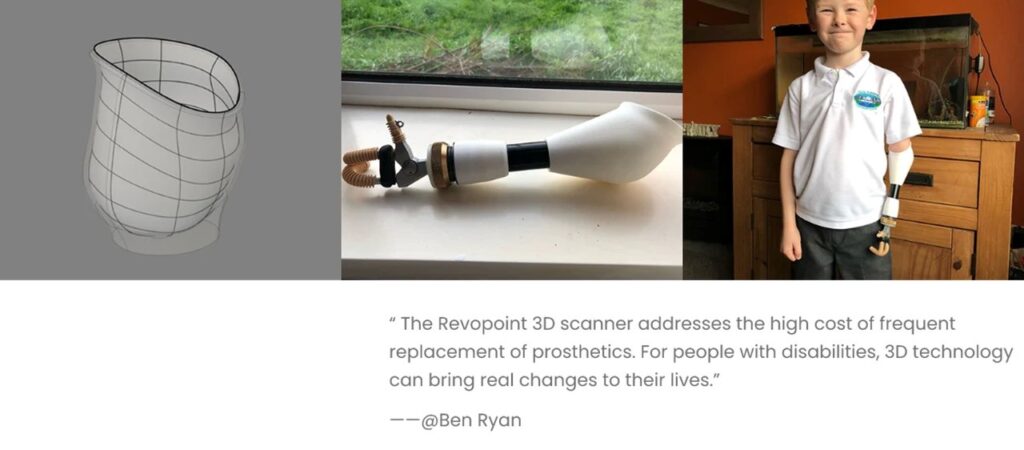 Revopoint 3Dスキャナーを使用することで、患者の3Dモデルを迅速かつ正確に作成することができ、適合性が高い義肢モデル作成することができます。