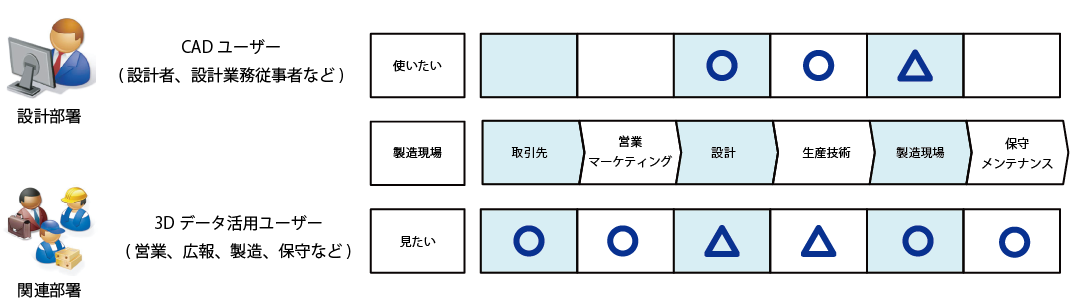 ・より有効に、3Dデータを活用できる-「使う3D」と「見る3D」を明確化し、適材適所に配布することで3Dデータを幅広く活用できます。