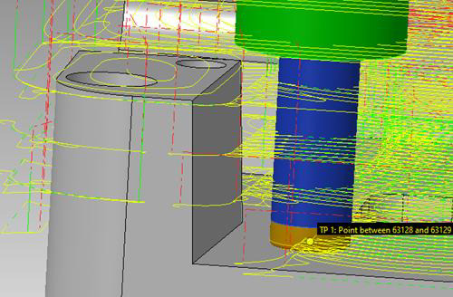 干渉回避アルゴリズムが改善され、以下の原因で工具とストックモデル間の干渉が検出された場合、誤った干渉検出結果の生成を防止します。