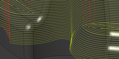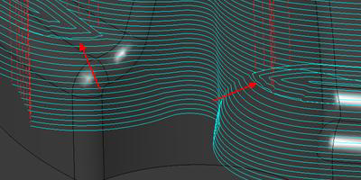 ツールパスアルゴリズムが更新され、特に緩勾配領域で、波状のツールパス生成が回避されるようになりました。